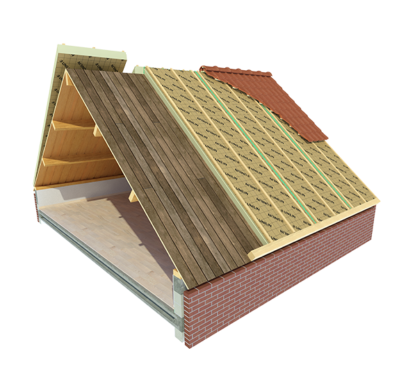 Element voor na-isolatie van het dakbeschot. De elementen zijn samengesteld uit PIR isolatie (polyisocyanuraat) en 3 vurenhouten tengels. Deze platen kunnen direct op het bestaande dakbeschot worden bevestigd. De elementen zijn geschikt om stuikend te verwerken, d.w.z. dat het zaagrestant van de plaat het beginstuk is voor de volgende baan. Plaat kan zowel voor pannen als leien daken worden gebruikt. Lengte 540cm breedte 120,5cm (werkend oppervlak 6,50 vierkante meter)